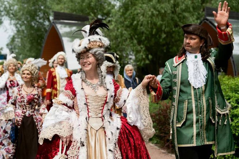 Особый интерес вызвали показательные выступления военных реконструкторов — полевая артиллерия, залпы пороховой пушки и строевая подготовка Бомбардирной роты Преображенского полка. Атмосферу дополняли шутовские представления, бальные танцы и парад исторических персонажей.
